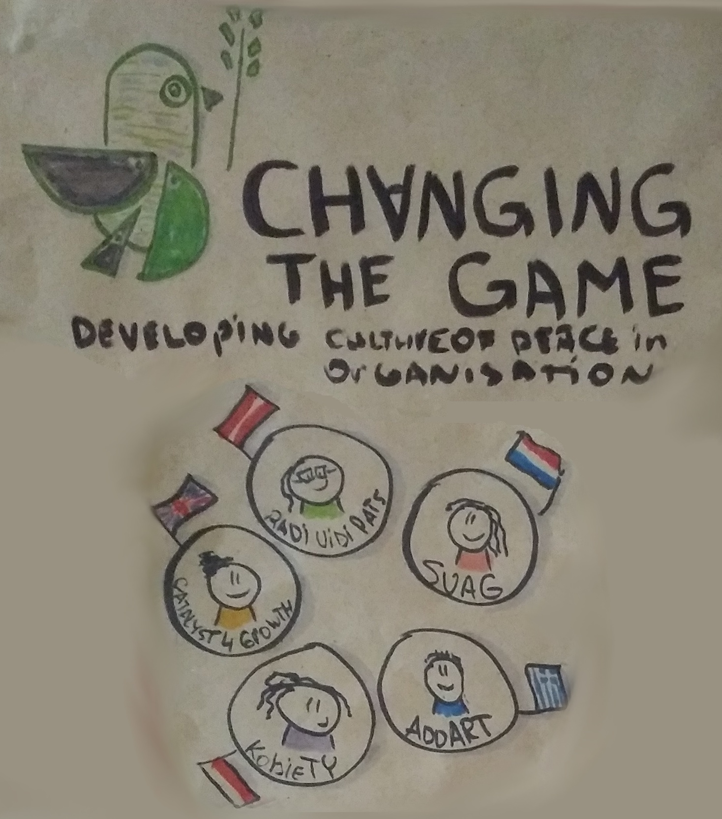 20 people from 5 countries with different backgrounds gathered from the 3rd till the 9th of May in Poland, at the beautiful natural farm of Zywa Ziemia to participate in workshops and develop the game. During this time we brought up the aspects and mechanisms to create games, and gathered ideas to complete the Guide accompanying the game. During the workshops participants experienced not only the beauty of gamification and board+card games but also reflected upon nonviolent communication and how the Culture of Peace works in our organisations and how it could be implemented into working environments.