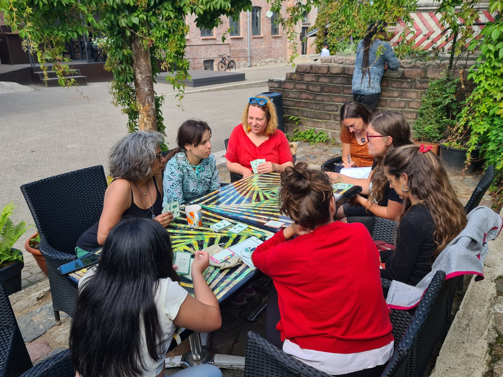 During this visit from the 27th of July to the 1st of August our volunteers learned about the history of the game, key methods underlying its mechanism (Sociocracy and Nonviolent Communication), how to facilitate it and how it has been used by Radi Vidi Pats and their associates. They engaged with many locals and internationals at a festival about democracy and heard from an educator how she set-up a reserach to measure the impact on the Peace Please game on the micro-environment in Latvian schools.
